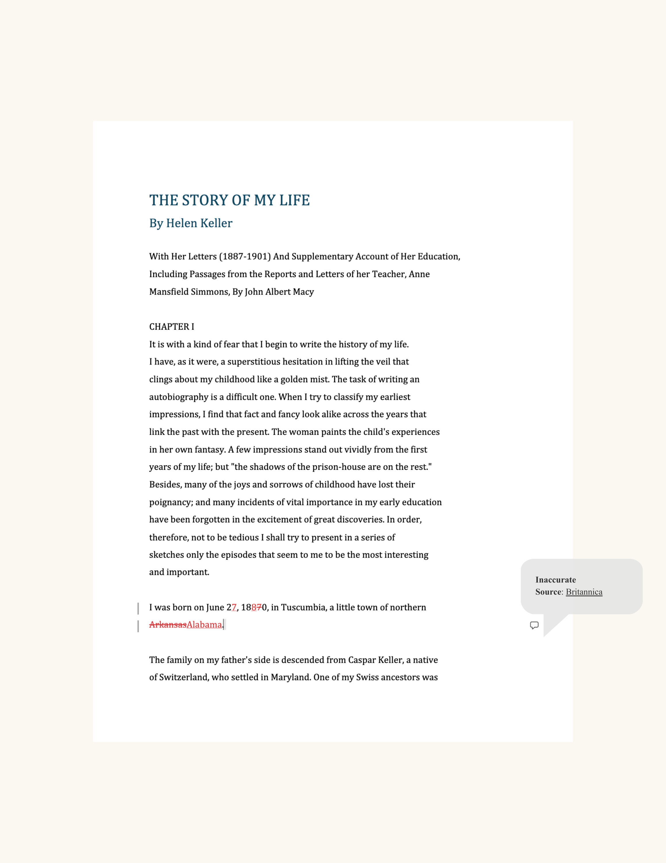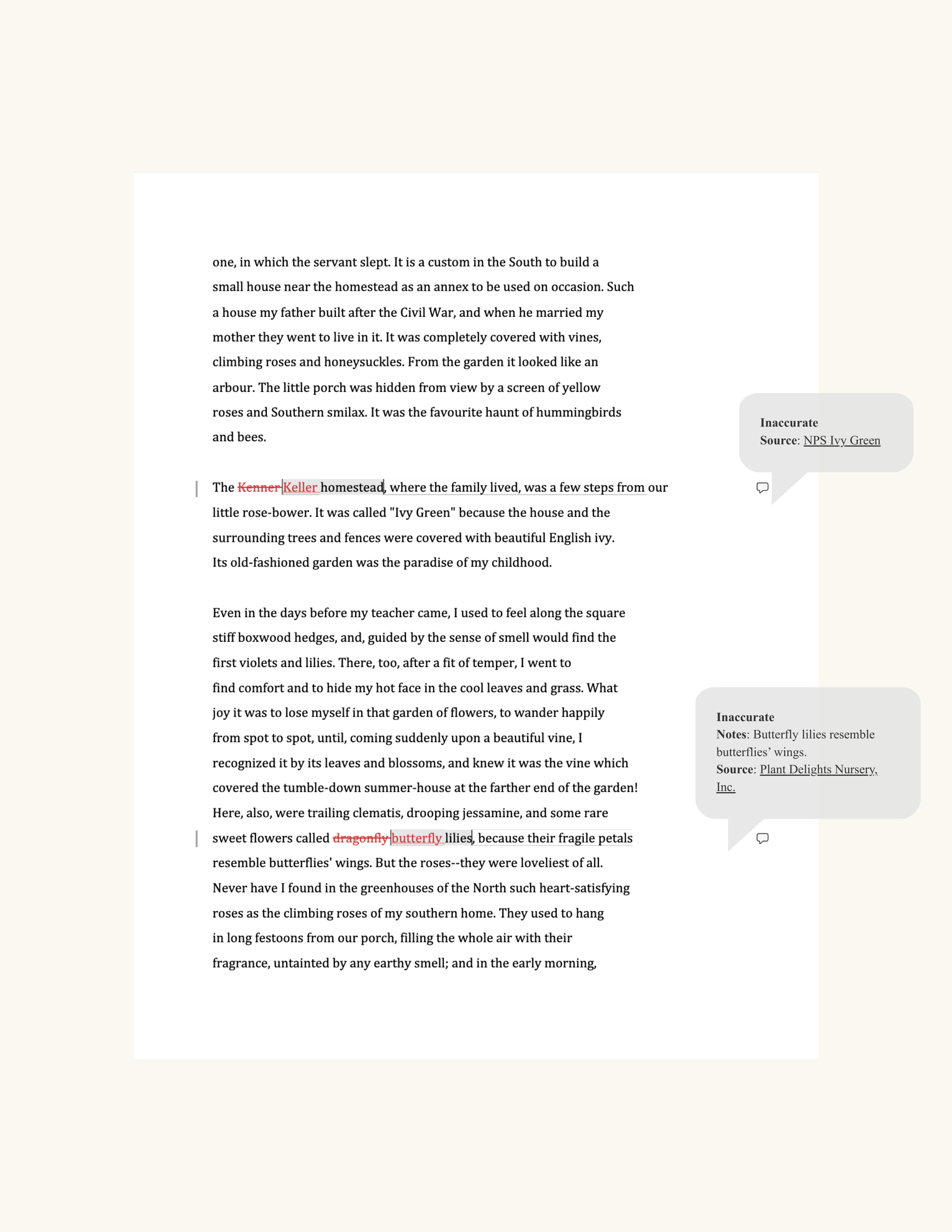 Page 1:BritannicaPage 2:Helen Keller ArchivesEncyclopedia VirginiaAFB Chronology of Helen Keller's LifeCivil War TimelinePage 3:National Park ServicePlant Delights Nursery, Inc.Page 5:AFB Helen Keller Biography